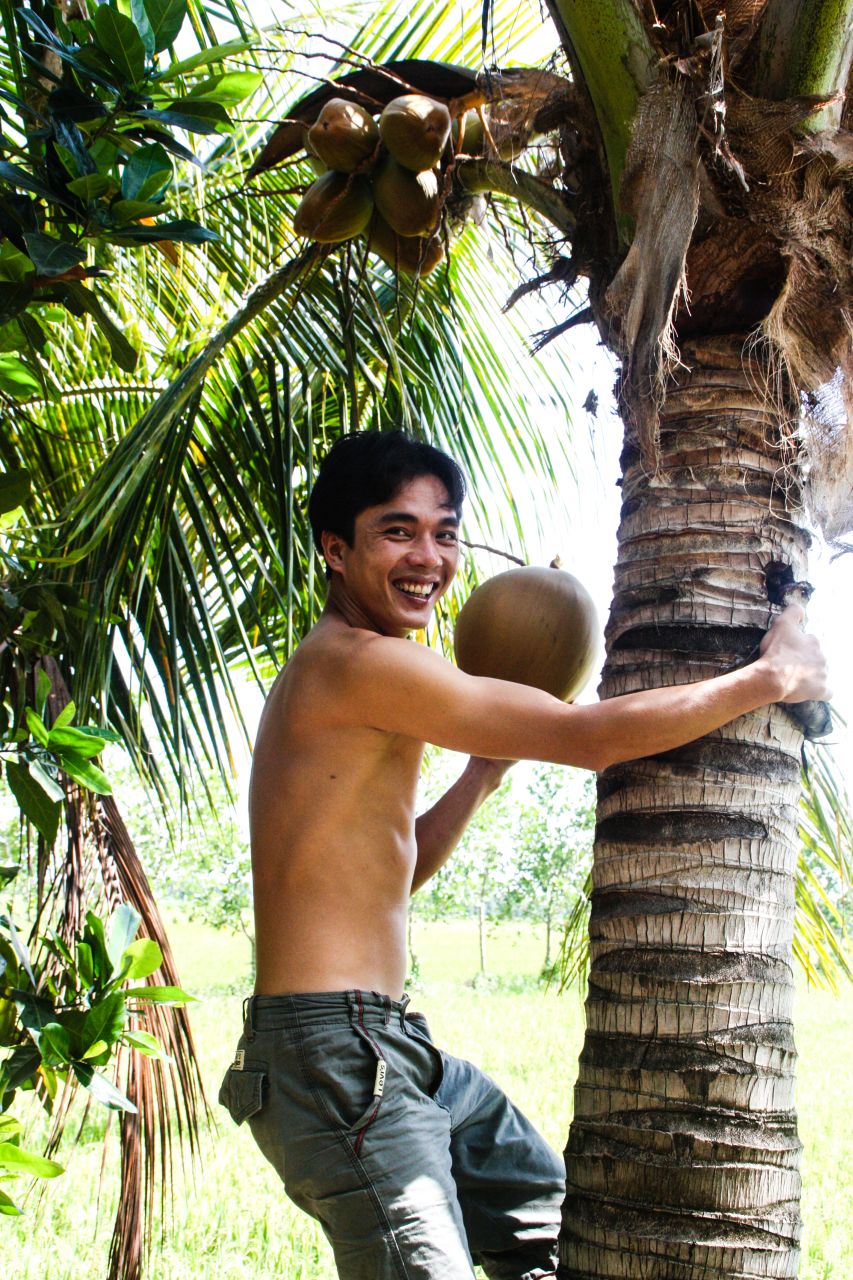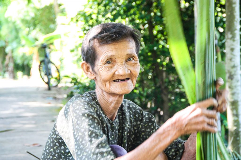 There’s a closeness between generations here that’s simply beautiful to witness. While in some other countries, older ones look forward to relaxing at retirement age, in the Delta, older ones continue to be useful members of the family, looking after grandchildren, or tending to small chores around the home, like stripping off palm fronds for some new thatching.