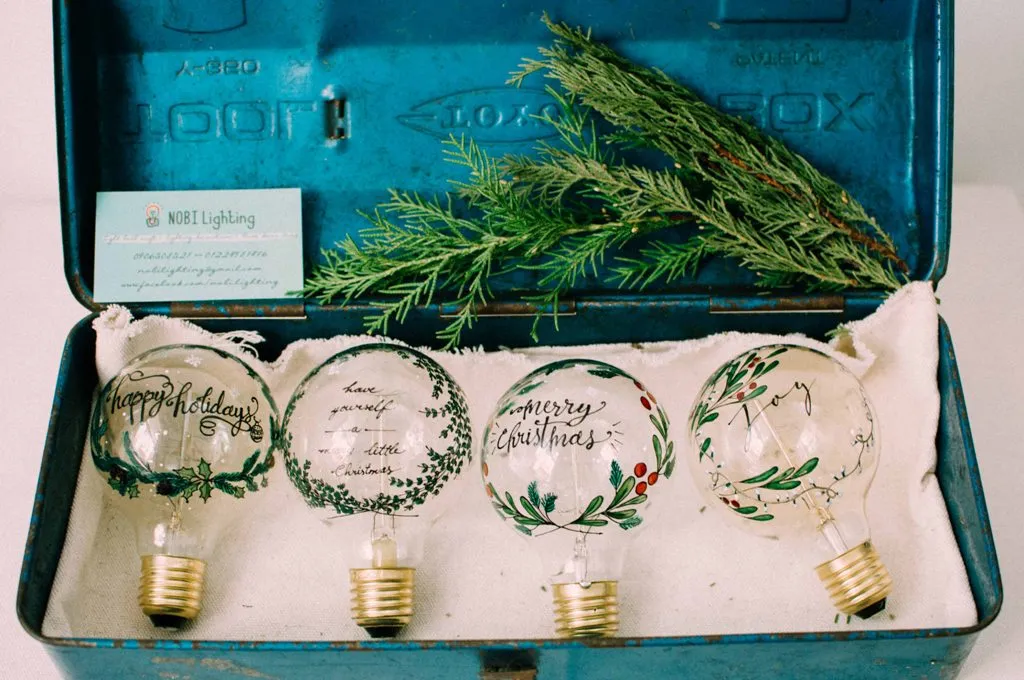 Another feature of the lamps are the bulbs, recalling vintage bulbs of yesteryear. An also handpaints designs on some of the bulbs, ranging from flowers and inspirational quotes to custom designs for weddings and other occasions.
