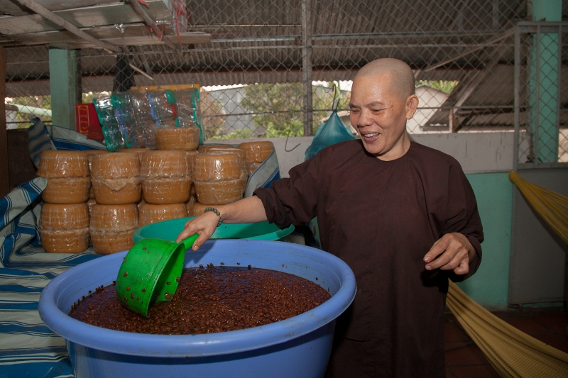 This is very much a cottage industry. There are no fancy labels or glass jars. Just homemade goodness, carefully supervised by the nuns of the Phuoc Hue Pagoda.