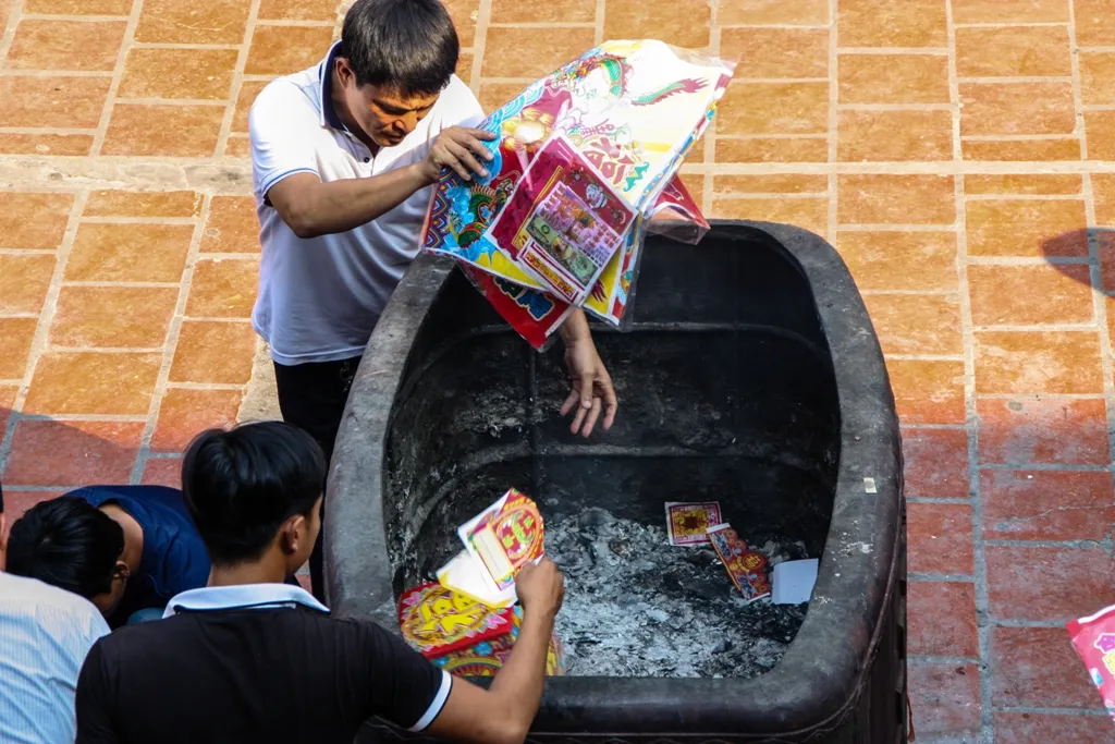 ? The Vietnamese believe that releasing animals is a meritorious act. Vendors outside the temple sell sparrows for people to release. If you want to participate, make sure to confirm the price before releasing the birds!