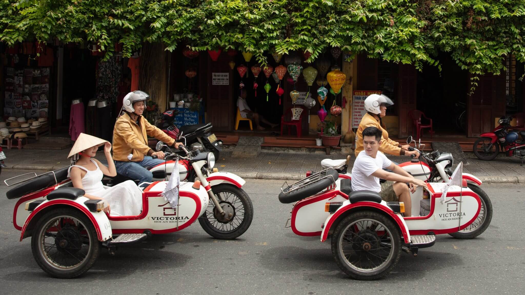 Tourists travel around Hoi An Quarter via Victoria Hoi An unique sidecars.