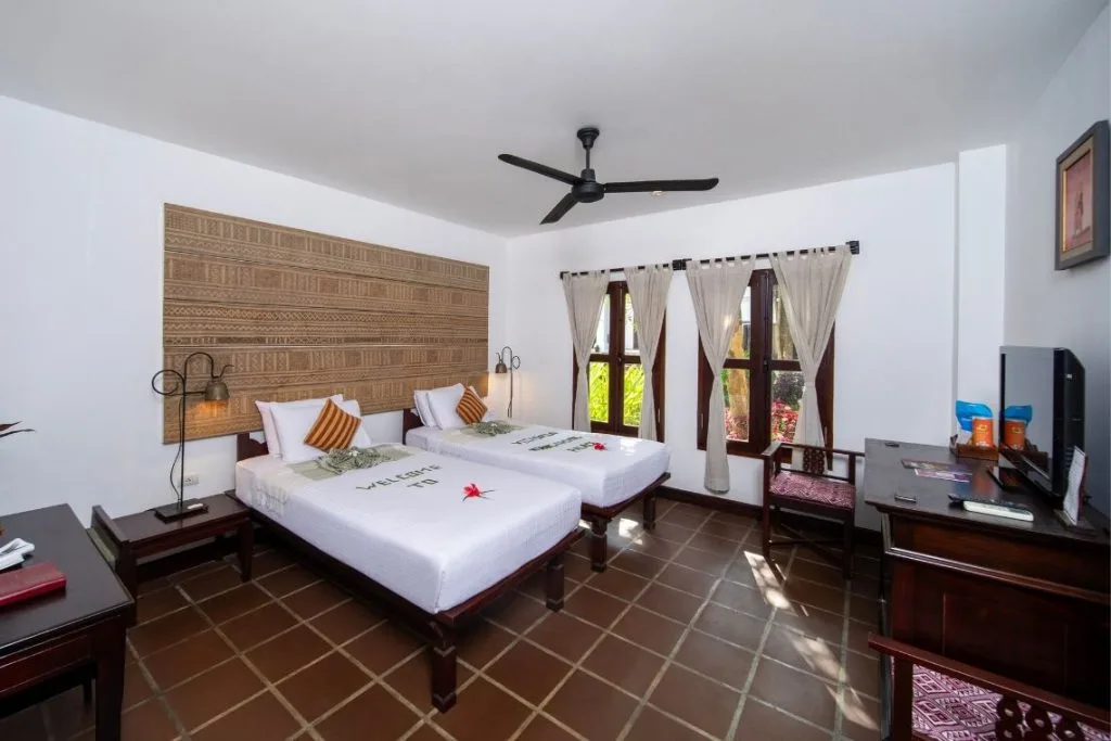 The Superior Palace rooms offer a variety of views, from the Mekong River to the lush garden or the vibrant streets, providing guests with a unique opportunity to explore the local life and culture. Each room is elegantly decorated with rosewood and handcrafted local textiles, creating a cozy atmosphere that reflects the distinctive cultural heritage of Luang Prabang. With its unique design and locally inspired interiors, the Superior Palace Double rooms promise a memorable and delightful experience for every guest.
