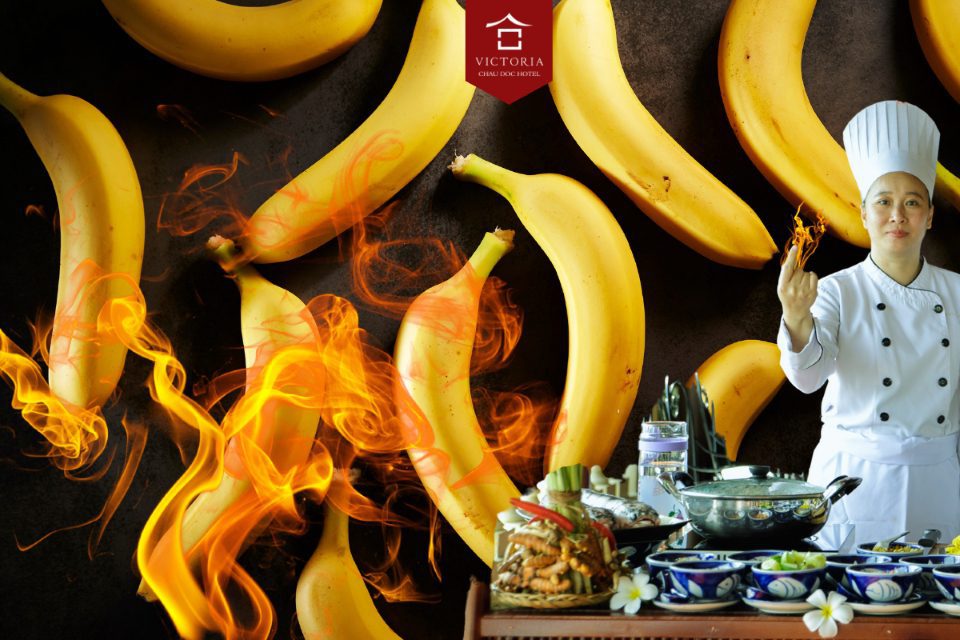 Découvrez la Banane Flambée, unique et « brûlante », disponible exclusivement au restaurant Bassac, Victoria Chau Doc – une aventure culinaire créative et raffinée.