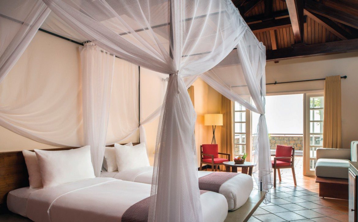 La chambre Deluxe est revêtue de carreaux en terre cuite rouge, avec un balcon donnant sur les rizières ou le jardin, créant une atmosphère chaleureuse et proche de la nature. La chambre est équipée d’un mobilier moderne et est idéalement située près du hall principal et de la zone de restauration, ce qui la rend très adaptée aux personnes âgées et aux familles avec de jeunes enfants.