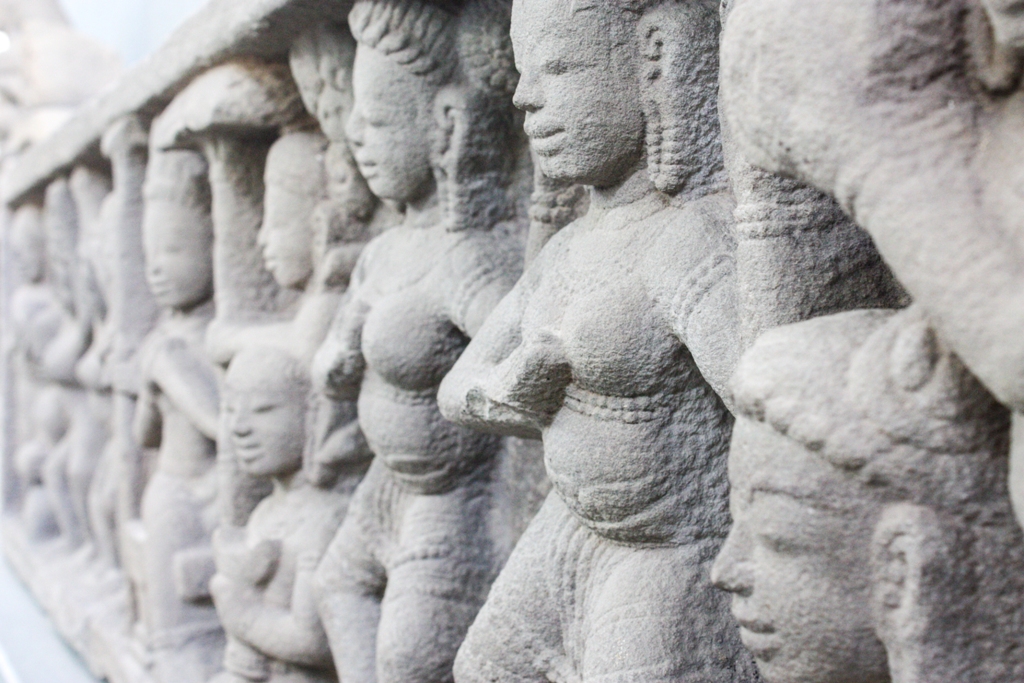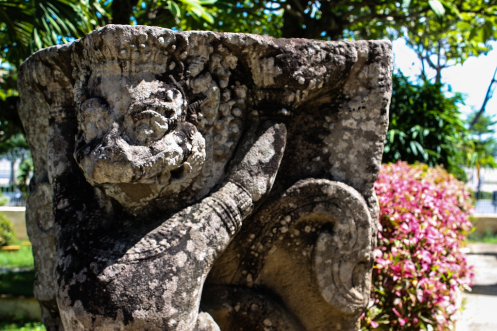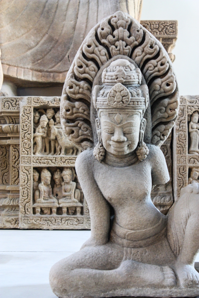 …hoặc Thế Tôn ngồi, một vị thần tượng với chi tiết tuyệt vời được tìm thấy tại Đồng Dương, tu viện Phật giáo lớn nhất được biết đến trong vương quốc Champa.